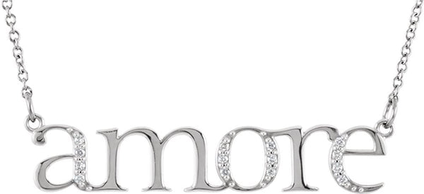 Diamond 'Love' Necklace, Rhodium Plated Sterling Silver, 18"