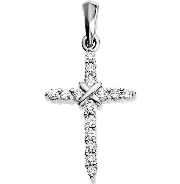 Diamond Angled Cross 14k Rose Gold Pendant (.33 Ctw, H+ Color, I1 Clarity)
