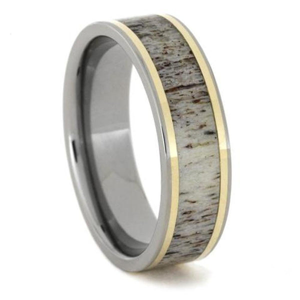 Deer Antler, 14k Yellow Gold 7mm Comfort-Fit Titanium Band, Size 8