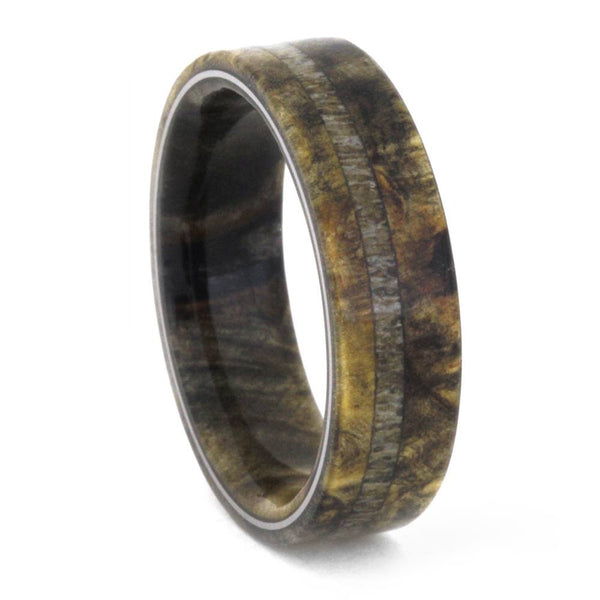 Deer Antler, Buckeye Burl Wood 6.5mm Comfort-Fit Titanium Band