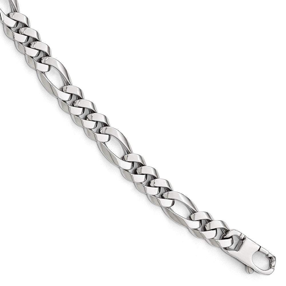 Men's Rhodium-Plated 14k White Gold 8.75mm Flat Figaro Bracelet, 8"