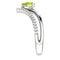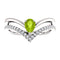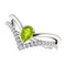 - Pear Shape Peridot Accent On-Center of V Shape Rows; Rows are High-Polished and Another one is Accented with 29 Hand-Set Diamonds; Ring is Crafted in Rhodium-Plated 14k White Gold