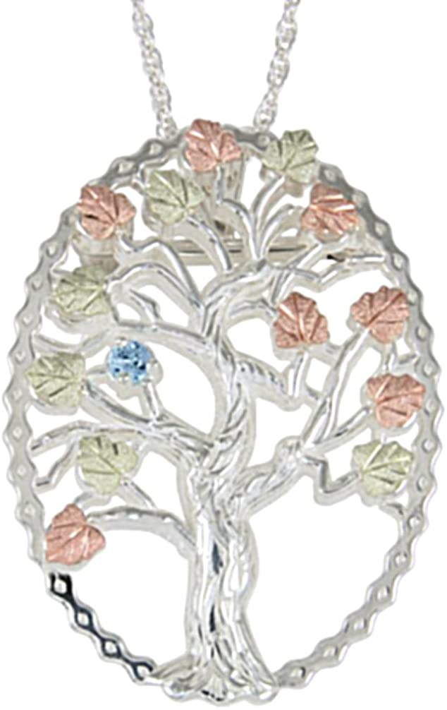 Aquamarine Tree Pendant Necklace, Sterling Silver, 12k Green and Rose Gold Black Hills Gold Motif, 18"