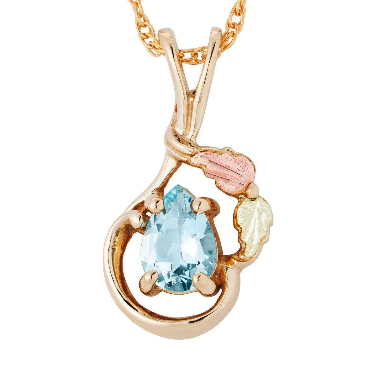 Pear Aquamarine Pendant Necklace, 10k Yellow Gold, 12k Green and Rose Gold Black Hills Gold Motif, 18"