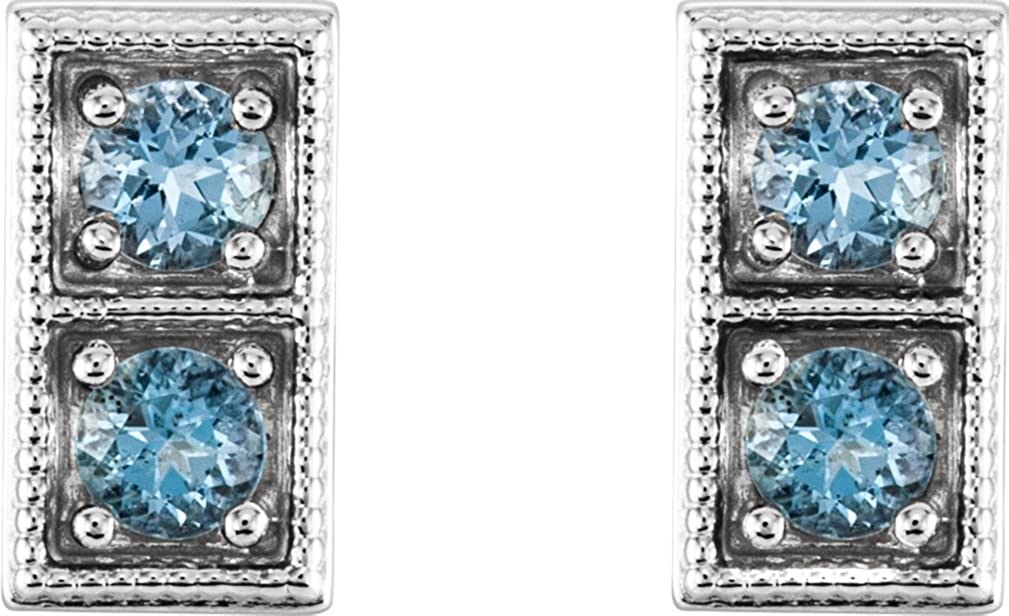 - Round Aquamarine Two-Stone Set in Rectangle Pattern Adorned with Granulated Bead Border; Earrings are Crafted in Polished Platinum