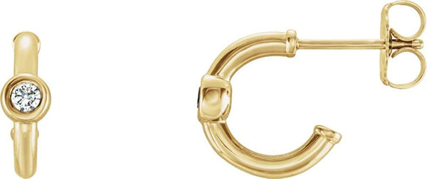 white Sapphire J-Hoop Earrings, 14k Yellow Gold