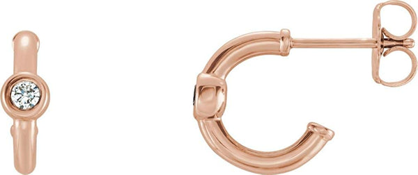White Sapphire J-Hoop Earrings, 14k Rose Gold