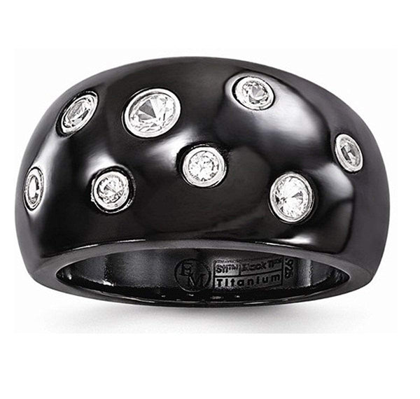 South Beach Black Titanium White Sapphire 12mm Dome Ring