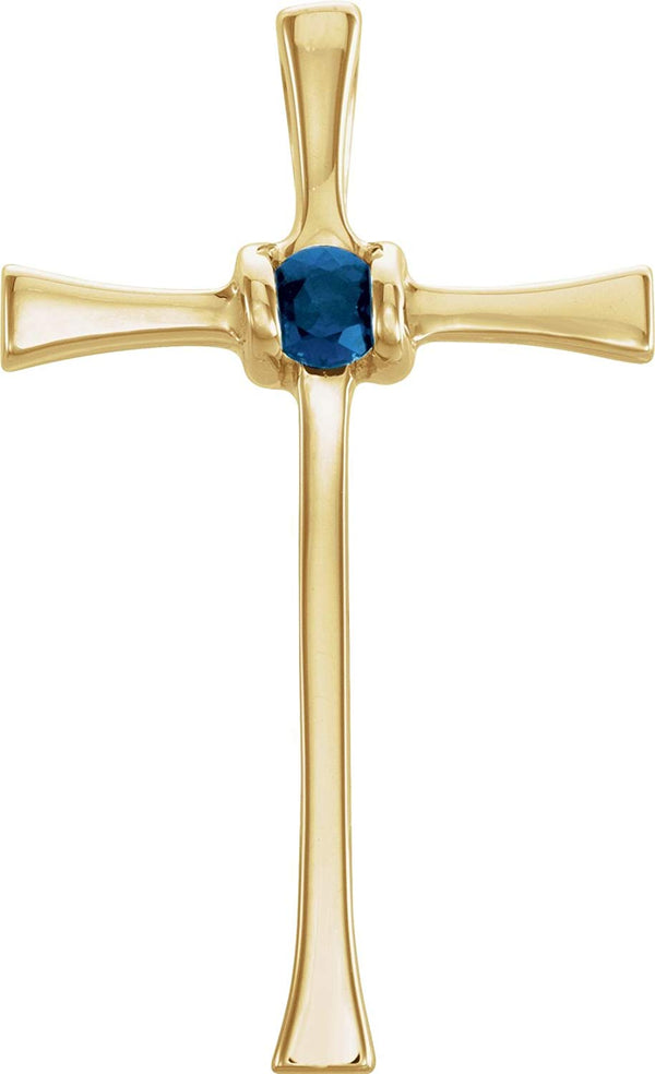 Sapphire Western Cross 14k Yellow Gold Pendant