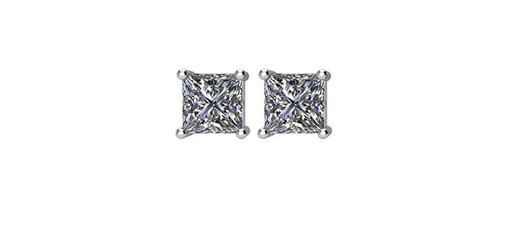 - Earrings Set in 14k White Gold Open Princess Setting So You See the Whole Diamond