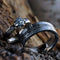 - HAND-CRAFTED Couples Rings: His is 7.00 Millimeters Wide, Hers is 3.50 Millimeters Wide; Engagement Ring has Hand-Set Diamond Inlaid with Partial Dinosaur Bone on Each Side of the 10k White Gold Shank; Stunning Widmanstätten Patterned Gibeon Meteorite Wedding Band has a Center Dinosaur Bone Inlay on a Flat Profile Comfort-Fit, Matte Titanium Band