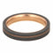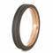 With contrasting metals, this unique rose gold ring is more than meets the eye. The rugged outside of the women's wedding band shows a sandblasted titanium ring with a sandblasted rose gold pinstripe.