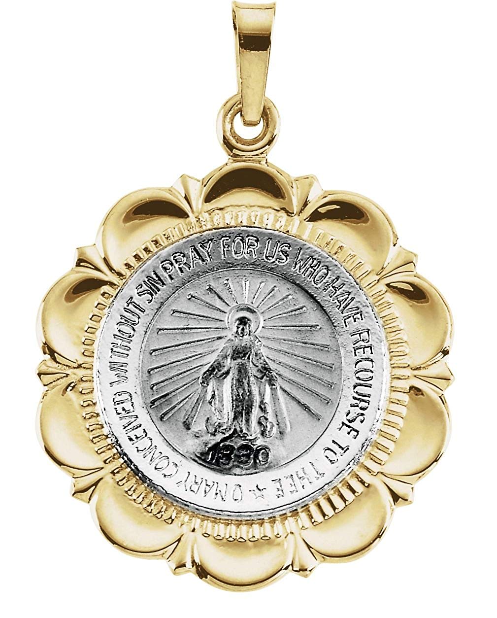 - 25.00 Millimeters X 21.00 Millimeters Two Tone Miraculous Medal Crafted in Polished 14k White and Yellow Gold