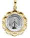 - Scalloped Border with Beveled Edge Encircles Lines Pattern Accent by Two-Tone Miraculous Medal