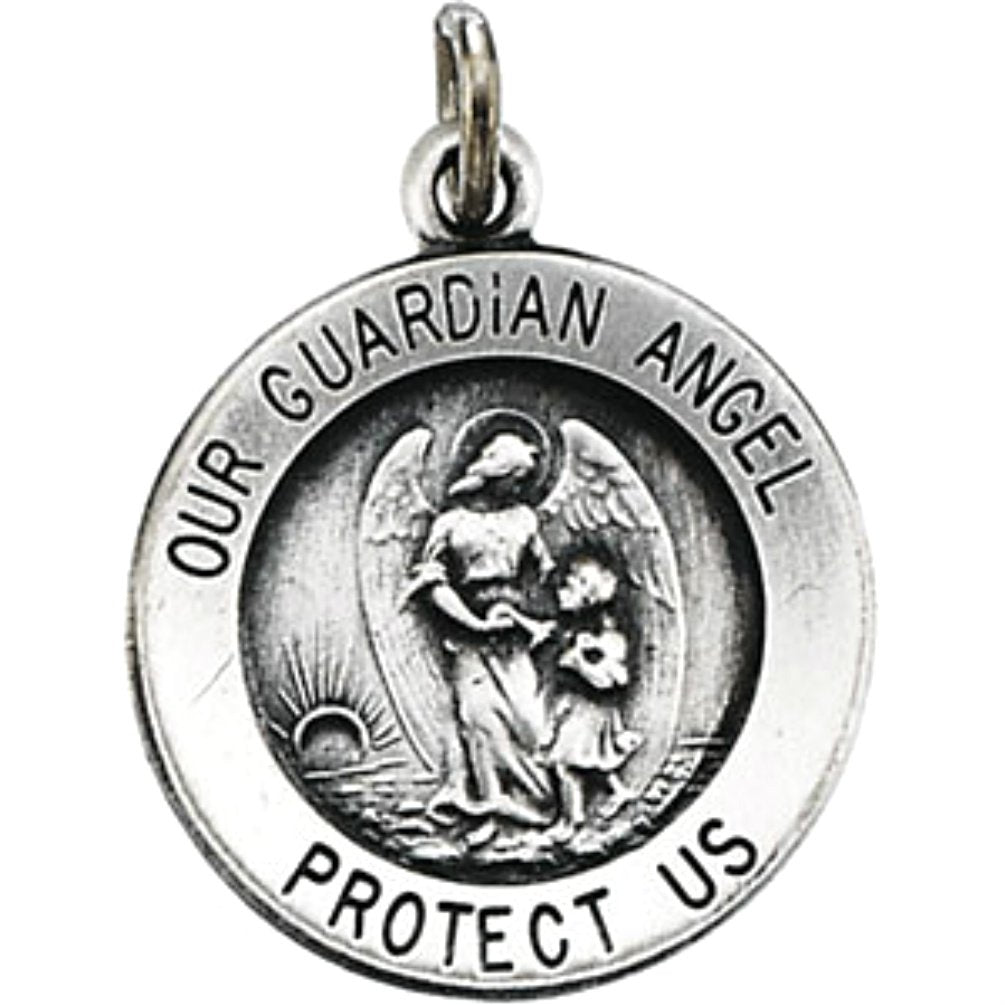 - 15.00 Millimeters Guardian Angel Medal Crafted in Polished 14k White Gold