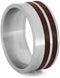 - EXOTIC Non-Jointed Eye and Swirl Patterned Amboyna Burl with Pinstripes of Lush Titanium Inlaid on a Flat Profile, Hypoallergenic, Satin Titanium Ring