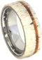 - Hand-made, Smooth, Flat Edged Titanium Band with an Naturally Shed Deer Antler Overlay with an Oak Wood Pinstripe ; Ring is Hypoallergenic, Comfort Fit, Flat Profile