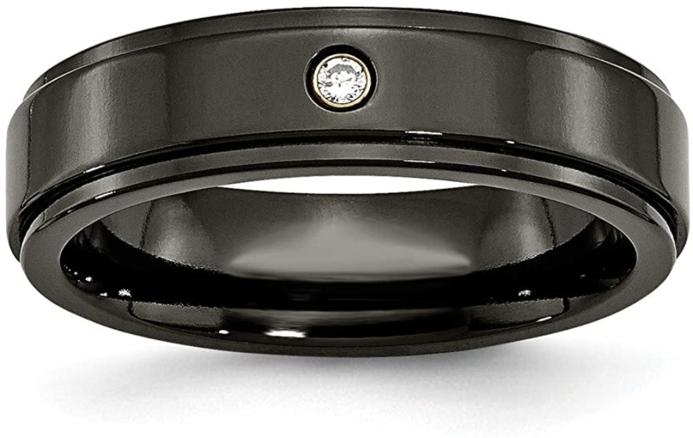Black Titanium, Diamond 6mm Ridged Edge Band, Size 7