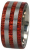 - SYMBOLIC Non-Jointed Bloodwood with Pinstripes of Lush Satin Titanium; the Flat Profile Band is Crafted in Hypoallergenic Titanium
