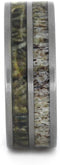- Comfort-Fit Band is 8.00 Millimeters Wide; Left to Right Measurements are: 1.00 Millimeters Titanium (matte), 2.50 Millimeters Deer Antler, 2.50 Millimeter Camo Print