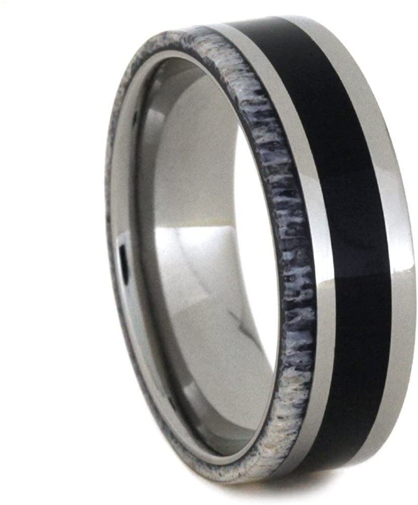 - HAND-MADE, Flat Band is Crafted with Non-Jointed Deer Antler and Ironwood with Titanium Pinstripe Overlay on a Hypoallergenic; Comfort-Fit Band