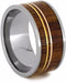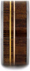 This titanium ring has a subtle brilliance with it's combination of wood and precious metals. Two thin beauties run through the magnificent wood grain of the Koa, a yellow gold and rose gold pinstripe, each with a purity of 10 karats.
