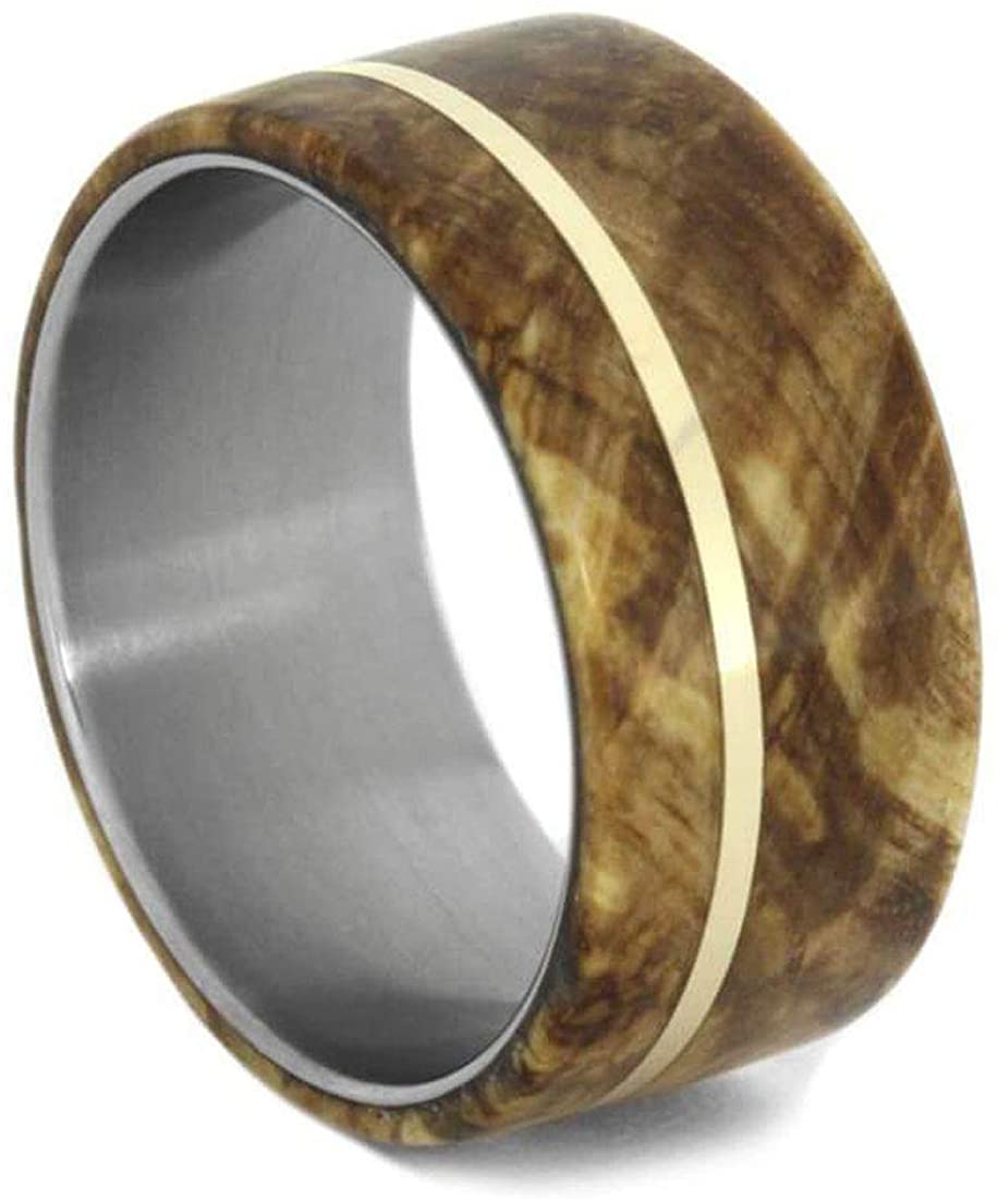 Men's Titanium Black Ash Burl, 14k Yellow Gold Pinstripe 8mm Comfort-Fit Band, Handmade, Size 7.75