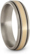 Satin Brushed Titanium, 14k Yellow Gold and Black Pinstripes 6mm Comfort-Fit Dome Wedding Band, Size 10