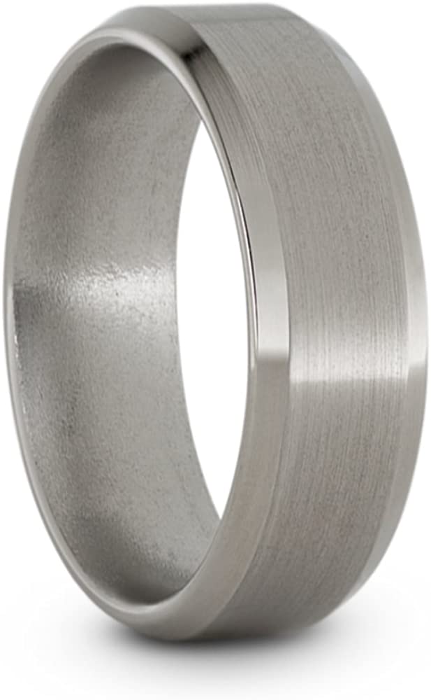 - HAND-MADE, Timeless Style Ring is Crafted with Solid Satin Finish Titanium Pattern; Ring is Hypoallergenic, Comfort Fit, Beveled Edge Profile Band