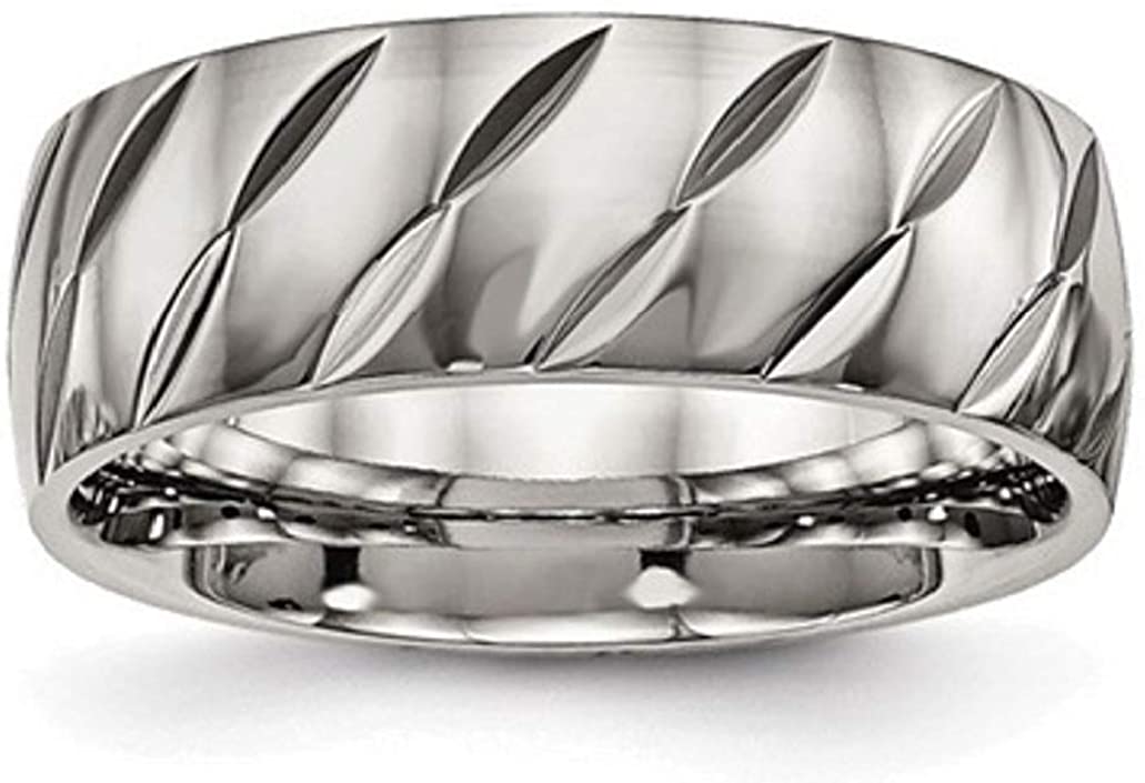 Titanium Precision Diamond-Cut Design 8mm Comfort-Fit Band, Size 10.5