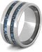 - Comfort-Fit, Polished Finish; Hypoallergenic Titanium Sleeve Surrounded by an Crushed Turquoise Stripes Overlay with a Pinstripe of Titanium; Both Turquoise Stripes Bands are Continuous with no Joints; Flat Profile Band