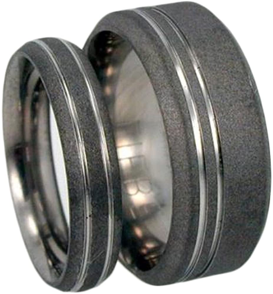 Grooved Pinstripes Sandblast Titanium Ring, Couples Wedding Band Set, M9.5-F4