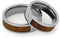 - MEASUREMENTS: Women's 1.00 Millimeters Titanium, 4.00 Millimeters Partial Ironwood Inlays, 1.00 Millimeters Titanium; Men's Left to Right 1.00 mm Titanium, 4.00 mm Partial Ironwood Inlays, 1.00 mm Titanium
