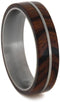 - HAND-CRAFTED Couples Rings: Men's Band is 8.00 Millimeters Wide and Women's is 5.00 Millimeters Wide; Both are Comfort-Fit, Polished Finished, Hypoallergenic Titanium Sleeve Encircled by an Ironwood Overlay with a Pinstripe of Titanium On-Center; Both Ironwood Bands are Continuous with no Joints; Flat Profile Band