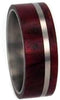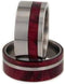 - HAND-CRAFTED Couples Rings: Men's is 10.00 Millimeters, Non-Jointed, Redwood Stripe Inlay on a Hypoallergenic Titanium; Women's is 8.00 Millimeters, Hypoallergenic Titanium is Surrounded by an Redwood Overlay with a Pinstripe of Titanium On-Center, Redwood Bands are Continuous with no Joints; Both Comfort-Fit, Flat Profile Wedding Band