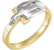 2-Tone Dove Cross Ring, Rhodium-Plated 10k Yellow and White Gold, Size 4.25
