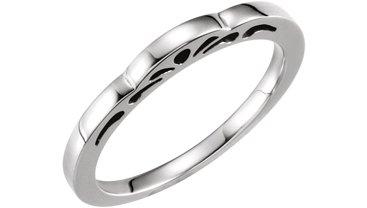 Great jewelry accessorizing is what makes us stand apart from the crowd and some rings do this better than others. This gorgeous hand-finished, cut-out paisley, rhodium-plated 14k white gold stackable band does the F words well: fabulously fashion forward with the lines of a favorite classic. When one individual ring just won't do, indulge your sense of whimsy and style with these versatile stacking rings. Whether you choose sleek, slim bands or sparkling gemstone rings, you can mix or match them to fit your unique personality. Designed to fit snugly with each other, they add both fun and sophistication to your wardrobe on either formal or casual occasions. Stackable rings allow your style to be as vast as your imagination in layering these glorious fashion accessories.