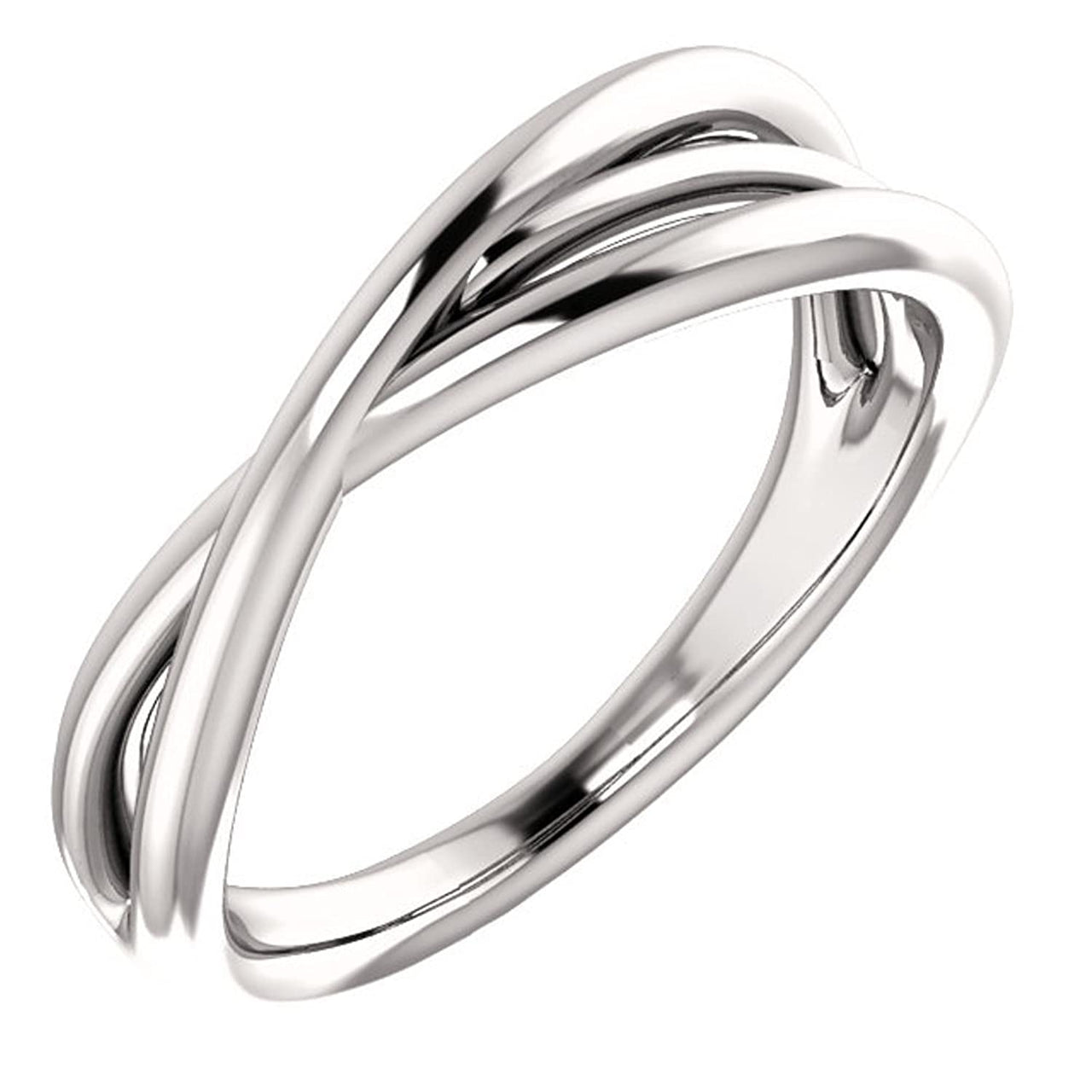 Platinum Free-Form Abstract Criss Cross Ring, Size 6.75
