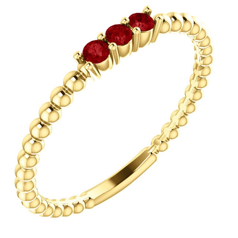 Chatham Created Ruby Beaded Ring, 14k Yellow Gold, Size 6