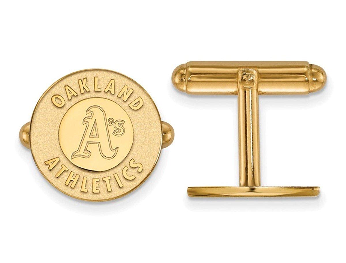 • MLB Oakland Athletics Engraved on the Round Cuff Links with Raised Text 'OAKLAND ATHLETICS A S' Finished with Bullet Back Clasps; Finished with Bullet Back Clasps; Hand-Finished in Polished Gold Plated and Sterling Silver